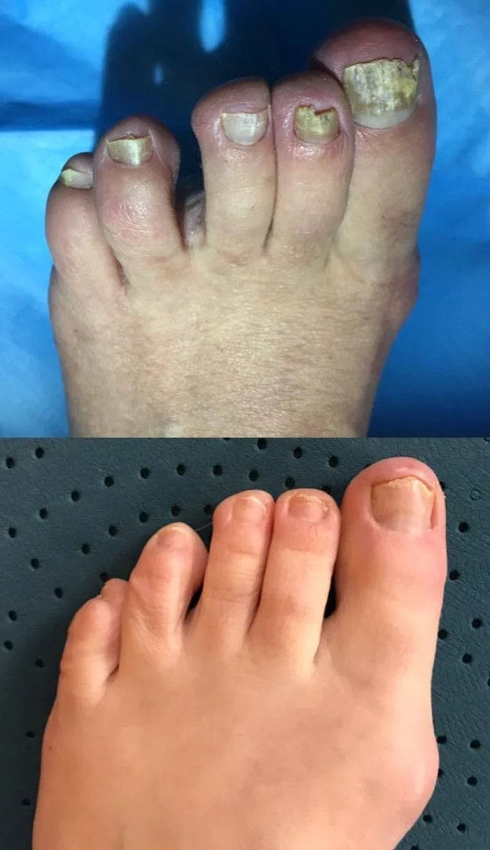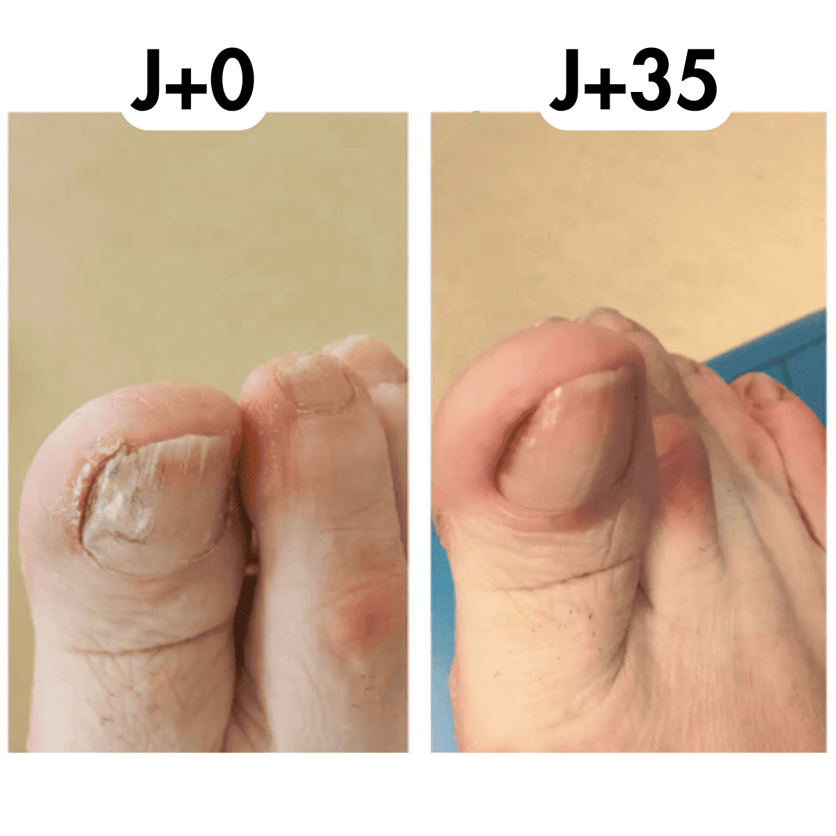 Lumière laser (généralement 900 nm) : pénètre en profondeur dans l’ongle pour atteindre les tissus infectés, inhibant la croissance fongique.
